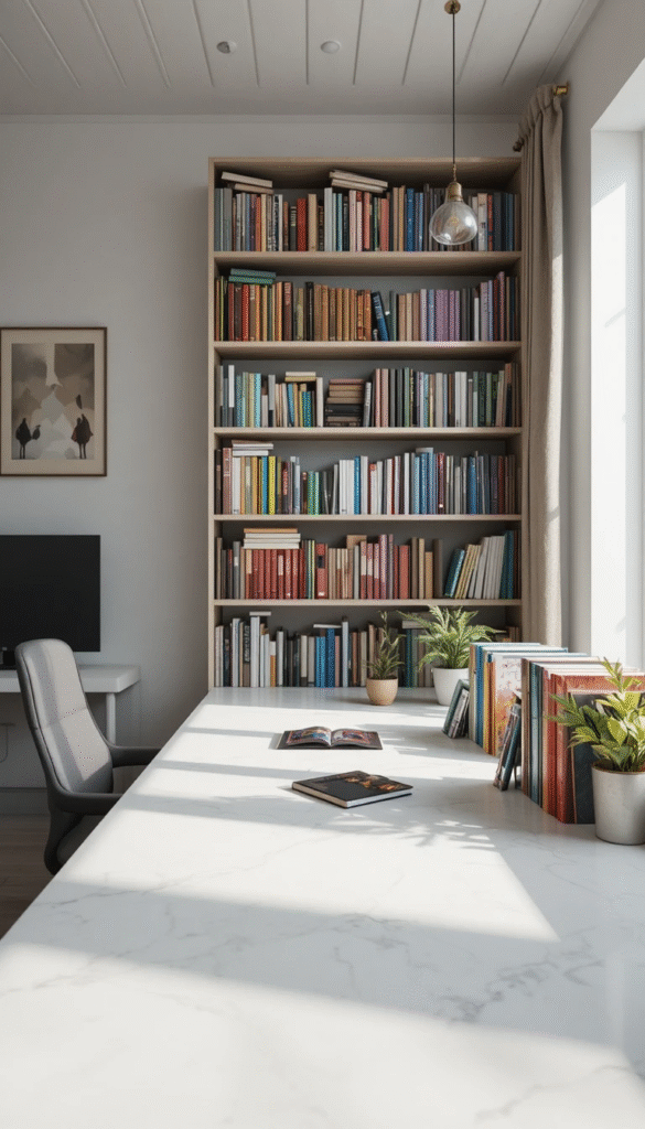 12. Marble and Stone Accents with Books