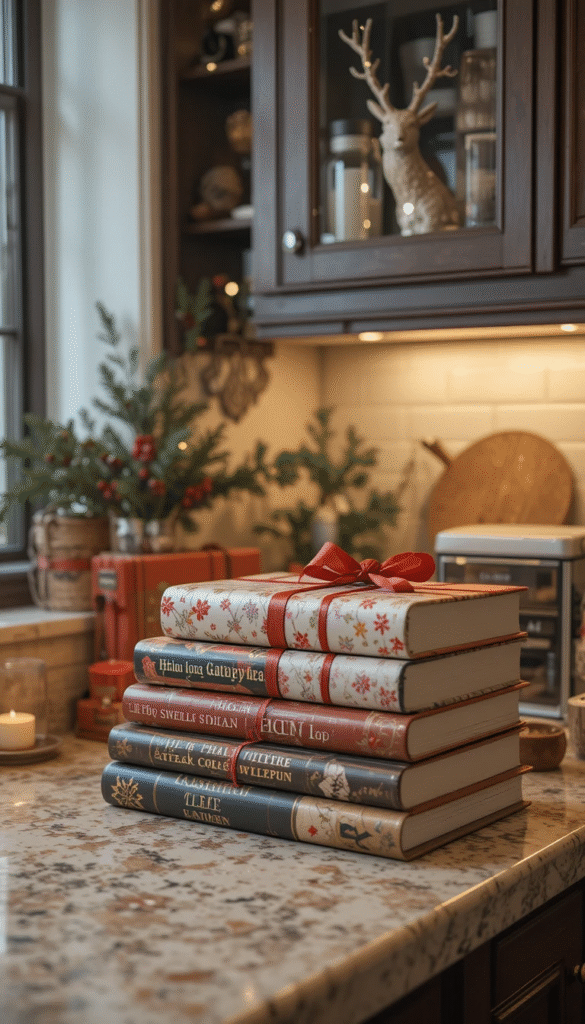 During holidays, wrap book covers in festive paper or ribbon to match your décor theme. This temporary transformation is budget-friendly and highly customizable.