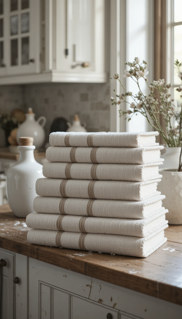 Display your most-used cookbooks in a stylish stack near your prep area. Add a small wooden spoon or decorative stand to tie the kitchen theme together. It’s functional and beautiful at the same time.