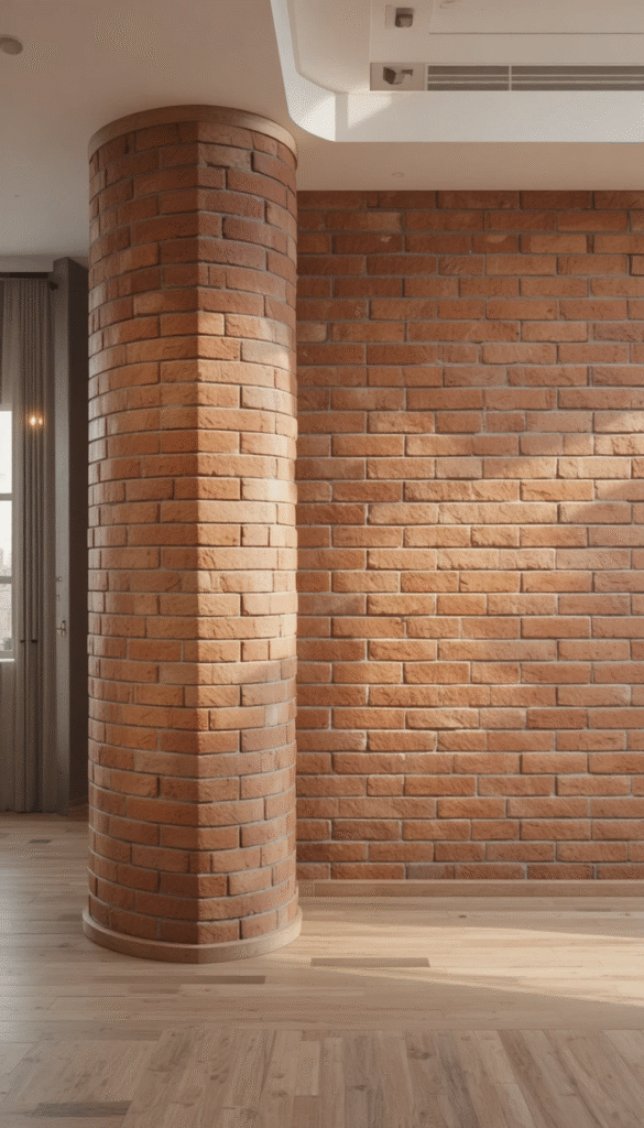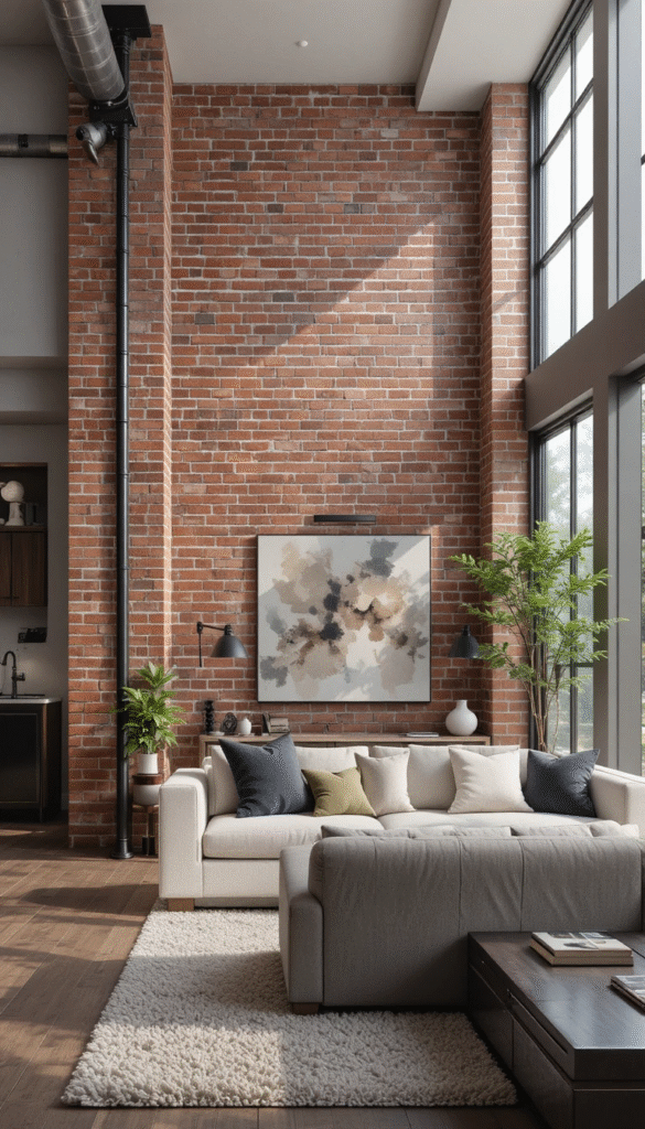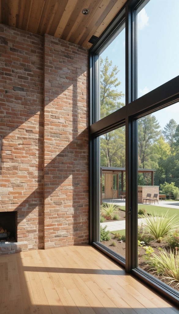 Natural light enhances brick texture beautifully. In 2026, brick walls placed near floor-to-ceiling windows create a perfect balance between raw material and open, airy design.