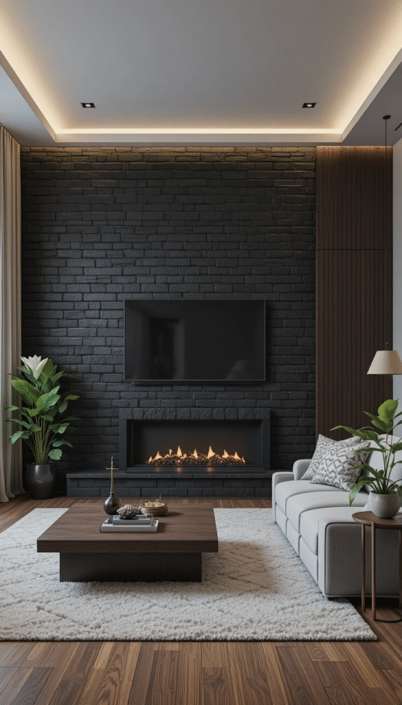 4. Black Brick Accent Walls for Dramatic Impact
