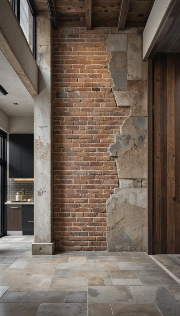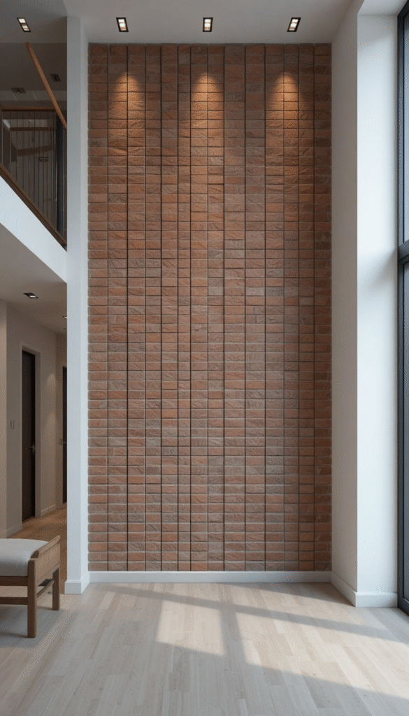 Combining brick with wood, glass, or concrete is a major trend. These mixed-material walls add depth and visual interest while keeping spaces modern. This idea works especially well in open-plan homes.