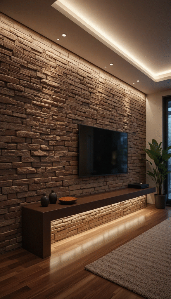LED strip lighting embedded along brick edges highlights texture beautifully. This trend adds a modern and luxurious feel, especially in living rooms, hallways, and entertainment areas.