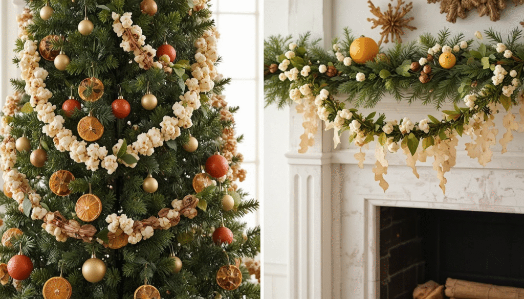 If traditional garlands are too pricey, try making your own using popcorn, dried orange slices, or paper cutouts. These options are inexpensive yet incredibly charming, especially when you want a vintage or farmhouse-style look. Hang the garlands on your tree, mantel, or entryway to instantly brighten your space. They’re easy to make and create a warm, handcrafted feel throughout your home.