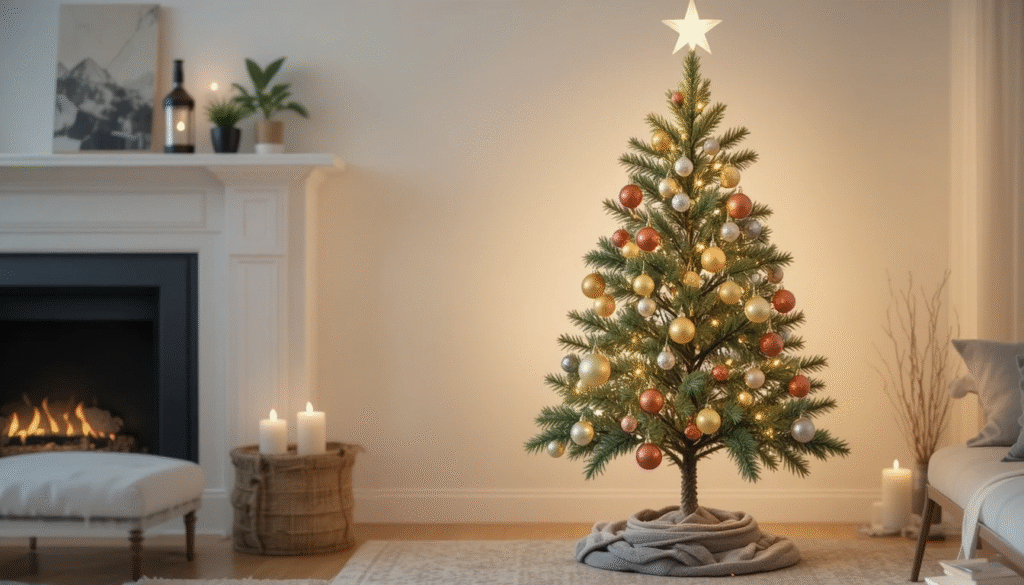 If you prefer a simple style, a minimalist Christmas tree can help you save while still looking elegant. Choose a small tree and decorate it with a limited number of ornaments in coordinating colors. Focusing on a few key pieces creates a clean and modern appearance that feels fresh and intentional. Minimalist trees are easy to set up and decorate, making them ideal for smaller budgets and small spaces.