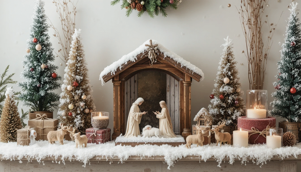 A little faux snow can turn ordinary decorations into enchanting winter scenes. Sprinkle it on your mantel, around your nativity set, or on tabletop arrangements for an instant snowy effect. Faux snow is usually very cheap and goes a long way, allowing you to elevate your display with minimal effort. It’s one of the easiest and most effective budget-friendly Christmas decorating tricks.