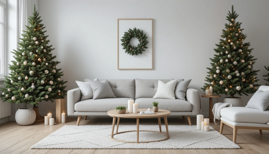 For a modern and clutter-free look, embrace Scandinavian Christmas decor. Keep the palette neutral — whites, soft grays, and natural wood tones. Add minimal greenery and simple candle arrangements. This clean and elegant approach highlights simplicity and comfort, focusing on the beauty of minimal details.