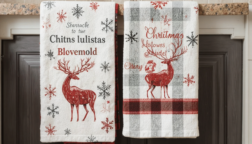 Switch out your everyday kitchen towels for ones featuring Christmas patterns such as snowflakes, reindeer, or plaid designs. It’s a small detail, but it adds instant holiday spirit and blends seamlessly with the rest of your décor. Choose high-quality cotton towels so they look great and remain functional.