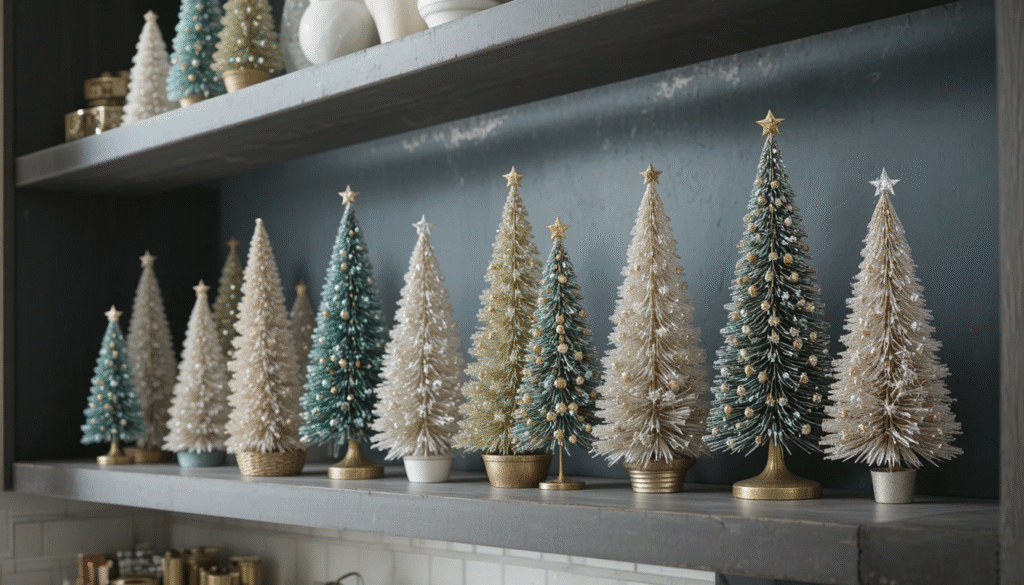 7. Decorate Shelves with Mini Christmas Trees