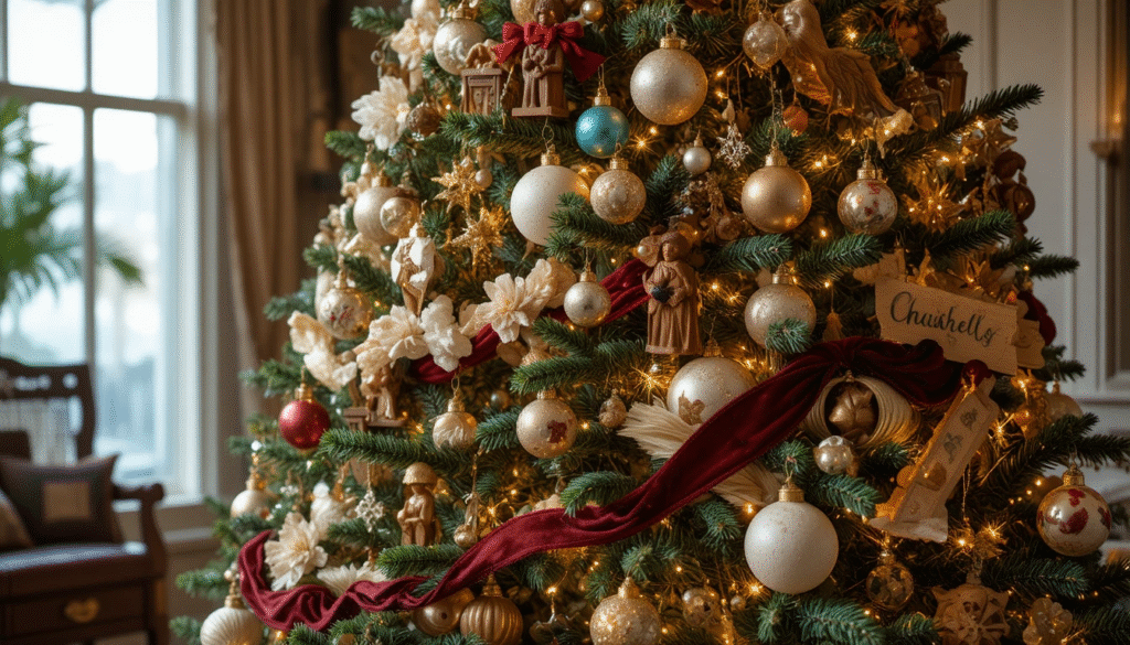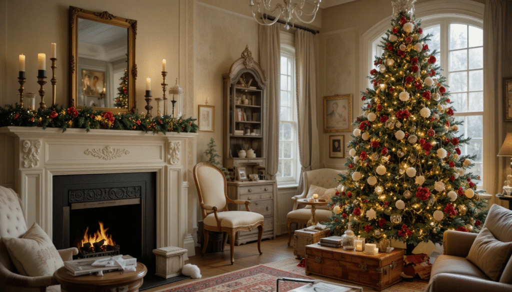 A beautifully decorated Christmas tree is the centerpiece of any classic holiday home. Start with warm white lights for a soft glow, then add traditional ornaments like glass balls, wooden figurines, and handmade crafts. Top the tree with a shining star or angel to complete the vintage look. Layering textures such as velvet ribbons, beaded garlands, and metallic ornaments adds richness and dimension, making your tree the ultimate showstopper.
