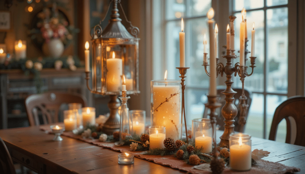 Candlelight creates the perfect atmosphere for a traditional Christmas setting. Place candles in glass holders, lanterns, or vintage candelabras to enhance the nostalgic vibe. Use scents like cinnamon, vanilla, or pine to fill the air with comforting holiday aromas. If you prefer a safer option, battery-operated LED candles can mimic the same warm glow without any worry.