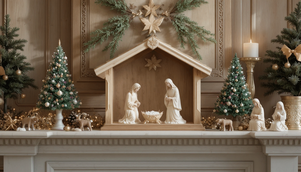 A Nativity scene captures the true essence of Christmas and serves as a meaningful decorative focal point. Place it on a mantel, console table, or beneath the Christmas tree. Choose traditional materials like wood or ceramic for an authentic look. This timeless display reminds everyone of the spiritual significance of the holiday season.
