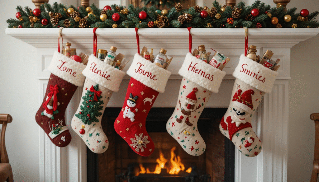 No traditional Christmas setup is complete without stockings hung by the fireplace. Choose designs made of wool, velvet, or felt with embroidered names for a personal touch. Fill them with small gifts, candies, or trinkets to maintain the joyful anticipation of Christmas morning. The sight of filled stockings instantly brings out childhood wonder and excitement.