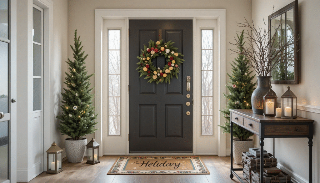 Your entryway sets the tone for your entire home. Use a festive wreath, a doormat with a holiday greeting, and small lanterns to welcome guests. Add a bowl of ornaments or a vase filled with evergreen branches on the console table. The goal is to make visitors feel the warmth of Christmas the moment they step inside.
