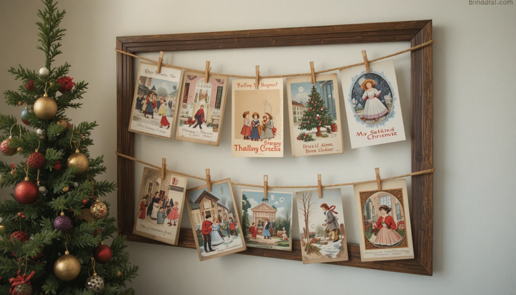 Old-fashioned Christmas cards bring a charming touch of nostalgia to your decor. Frame them or hang them on twine with small clips to create a delightful holiday display. This simple idea adds personality and showcases your appreciation for traditional holiday aesthetics.