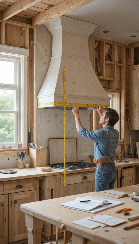 Before cutting any wood, proper planning is essential. Measure your existing vent hood carefully, including height, width, and depth, ensuring airflow is not blocked. Check manufacturer guidelines for clearance requirements above the stove, especially for gas ranges. Decide whether you want a wall-mounted, under-cabinet, or island-style hood cover. Sketch your design and determine if you want a simple box shape or a more decorative tapered structure. Planning thoroughly prevents costly mistakes later.