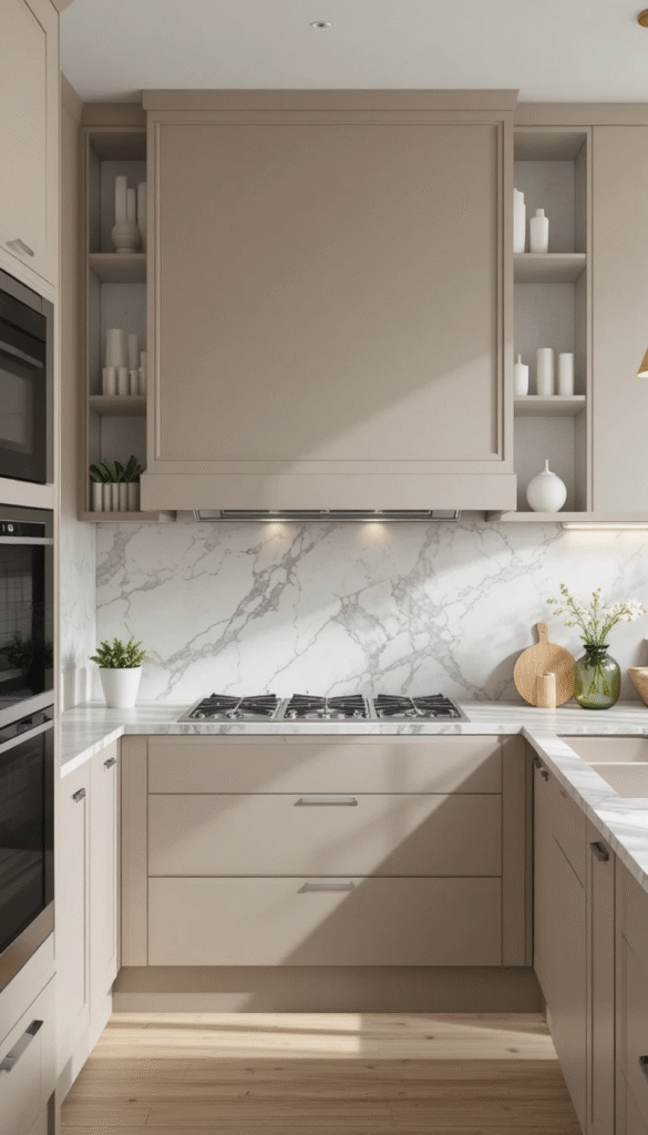 For homeowners who prefer clean lines, a minimalist flat-panel hood cover is an excellent choice. This style uses smooth surfaces with hidden seams and simple geometry. Painted in neutral tones like soft white, greige, or warm taupe, it blends effortlessly into modern kitchens. The beauty of this design lies in subtlety—no heavy trim or decorative molding. It’s perfect for contemporary or Scandinavian-inspired spaces.