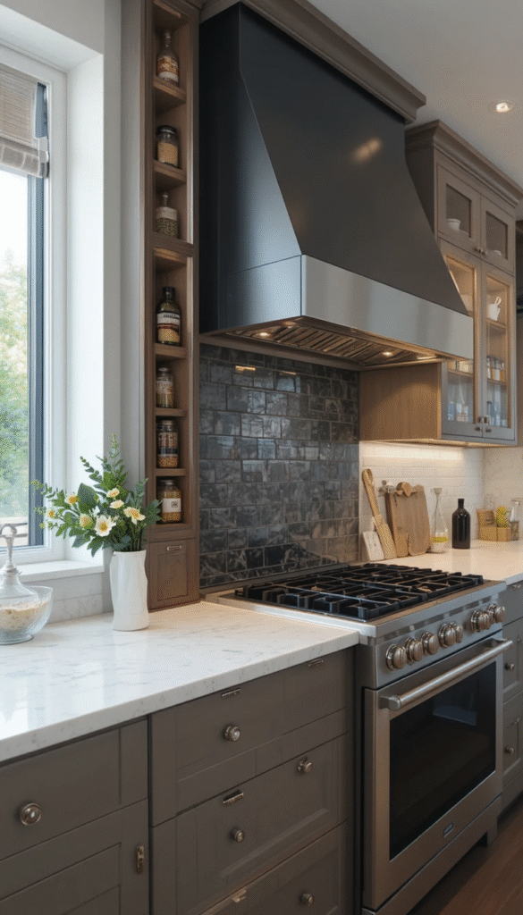 Some DIY vent hood covers include small hidden shelves for spices or decorative items. If space allows, consider shallow recessed niches on either side of the hood. This adds function without cluttering your countertop. Hidden storage is particularly helpful in smaller kitchens where every inch matters.
