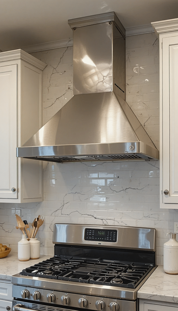 Your backsplash and vent hood should complement each other. In 2026, large-format tiles and slab backsplashes are popular. If you choose bold tile patterns, keep the hood cover neutral. If your backsplash is simple, consider adding texture or color to the hood for contrast.