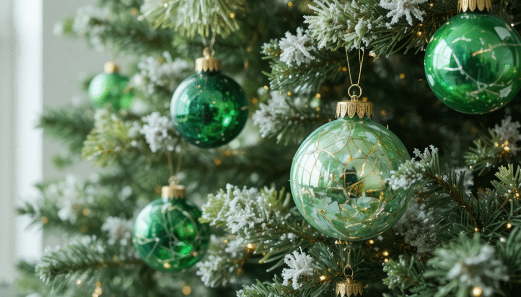 Green glass ornaments bring shine, depth, and a modern touch to your Christmas tree or garlands. Whether you choose deep emerald or soft sage, glass ornaments add texture and elegance. When paired with white décor, they help your space feel fresh and contemporary.
