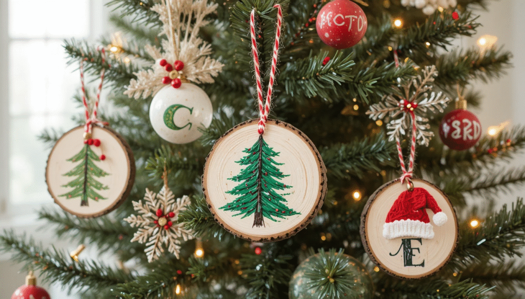 Wood slices are trendy in DIY décor thanks to their natural, earthy look. Paint them with Christmas themes like snowflakes, trees, Santa hats, or personalized initials. Use a simple acrylic paint set, add a protective seal, and finish with ribbon or twine to hang them. These ornaments look stunning on traditional or woodland-themed Christmas trees and make thoughtful personalized gifts.