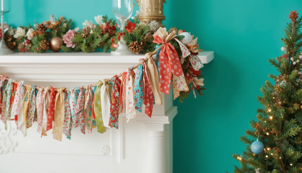 Instead of buying pricey garlands, create a charming one using leftover fabric scraps. Cut strips of festive fabric and tie them onto a long piece of twine, alternating colors for a fuller look. This handmade garland brings a fun, whimsical feel to mantels, railings, or door frames and can easily be customized to match your home’s color scheme. It’s also a wonderful way to reuse materials and reduce waste during the holidays.