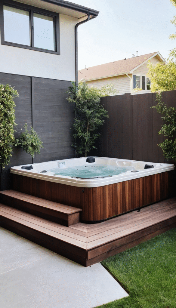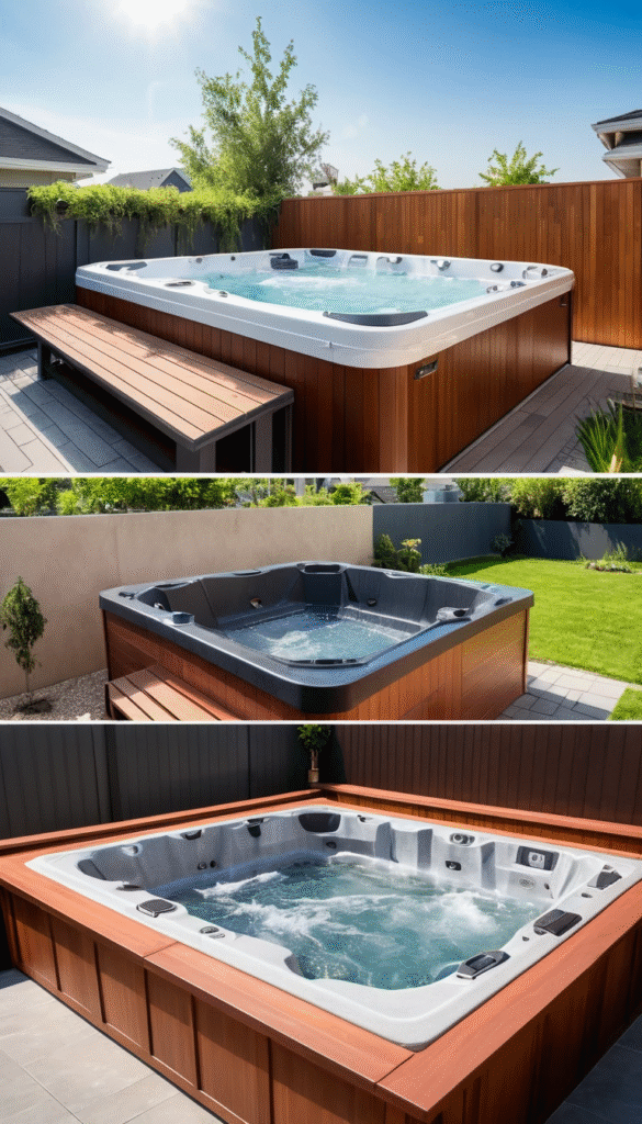 Wood surrounds add warmth and natural texture to backyard spas. Cedar and teak are popular choices due to durability. Wooden finishes complement both modern and rustic themes. Proper sealing ensures longevity against weather exposure.