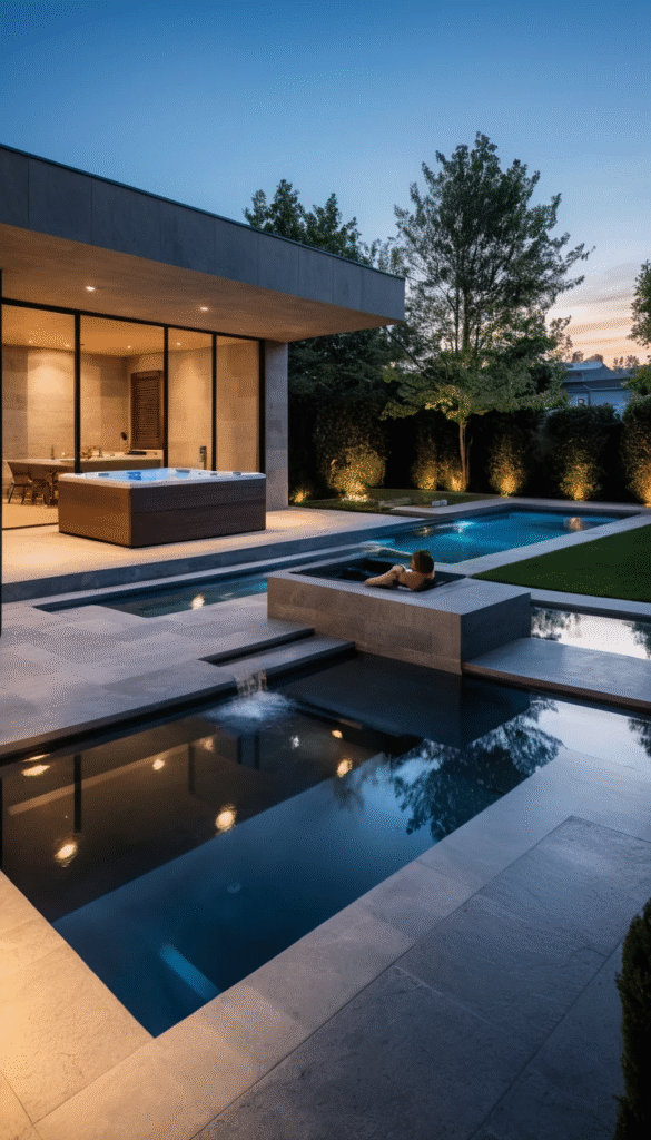 Water features like waterfalls, fountains, and spillover edges are trending strongly in 2026. These additions enhance visual appeal and create soothing background sounds. A waterfall feature can connect your Jacuzzi to a swimming pool for a cohesive design. It elevates the spa atmosphere to a luxury level.