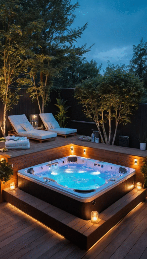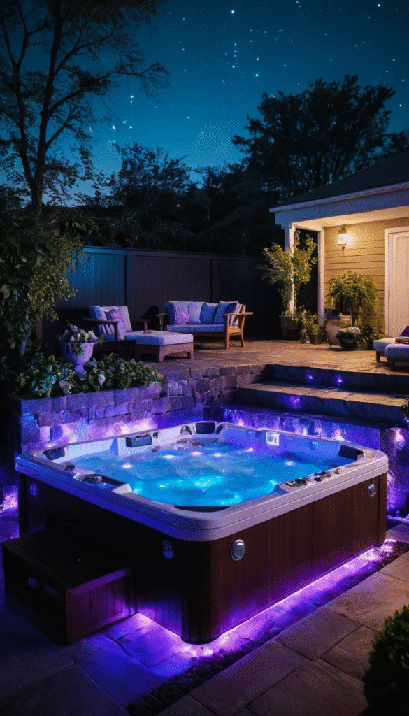 LED lighting systems are transforming backyard spas into nighttime retreats. Adjustable colors allow you to create relaxing blue tones or romantic warm shades. Many models sync lighting with music or water features. This adds ambiance and makes your Jacuzzi the perfect spot for evening relaxation.