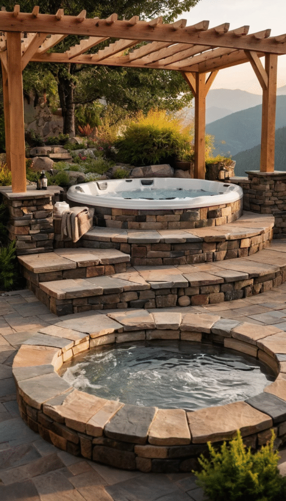 Rustic Natural Stone Jacuzzi Outdoor Designs
