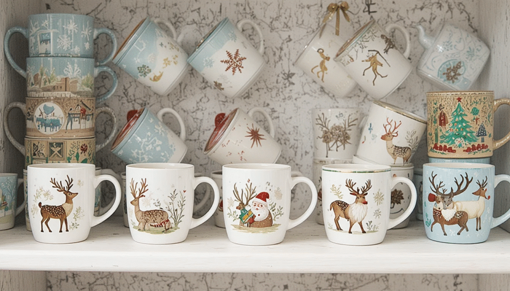 Replace your regular mugs with holiday-themed mugs featuring snowflakes, reindeer, or Santa designs. Display them on open shelves or a coffee bar for an extra dose of Christmas spirit.