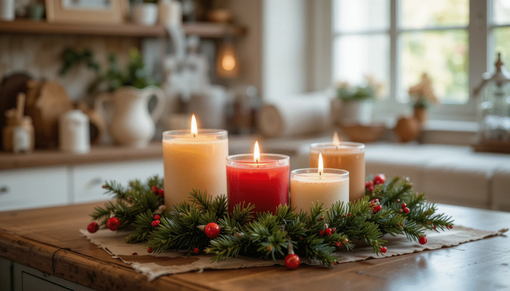 Fragrance plays a big role in creating holiday ambiance. Light candles with scents like cinnamon, pine, or vanilla sugar to make your kitchen smell like Christmas morning.