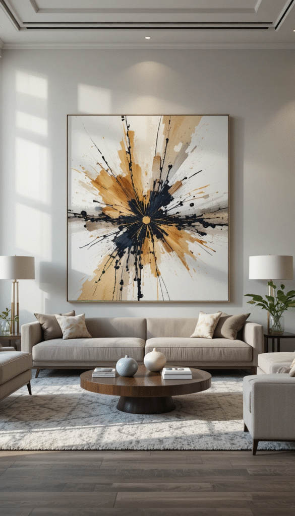 In 2026, oversized wall art replaces cluttered gallery walls in many living rooms. One large piece—whether abstract, landscape, or modern photography—creates a clean and sophisticated look. It draws the eye upward and makes the room feel more curated and intentional.