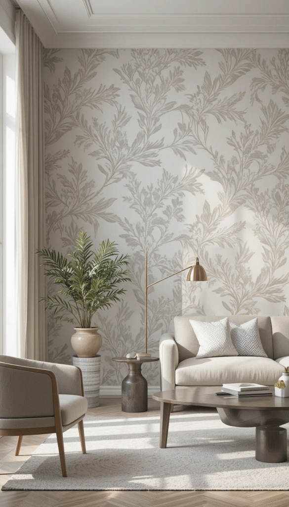 Wallpaper trends in 2026 focus on soft patterns, organic shapes, and muted colors. Instead of loud prints, homeowners are choosing elegant designs that add texture and depth. Wallpapered living room walls feel stylish and polished, especially when paired with minimal furniture.