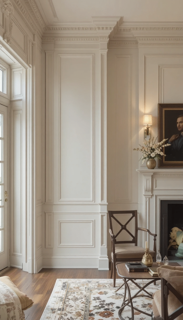 Decorative wall molding is making a strong return, especially in US homes with traditional or transitional styles. Simple rectangular or square trim patterns painted in the same color as the wall add texture and elegance without feeling old-fashioned.