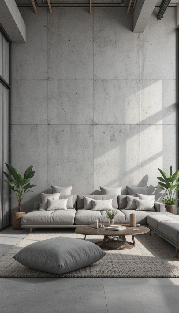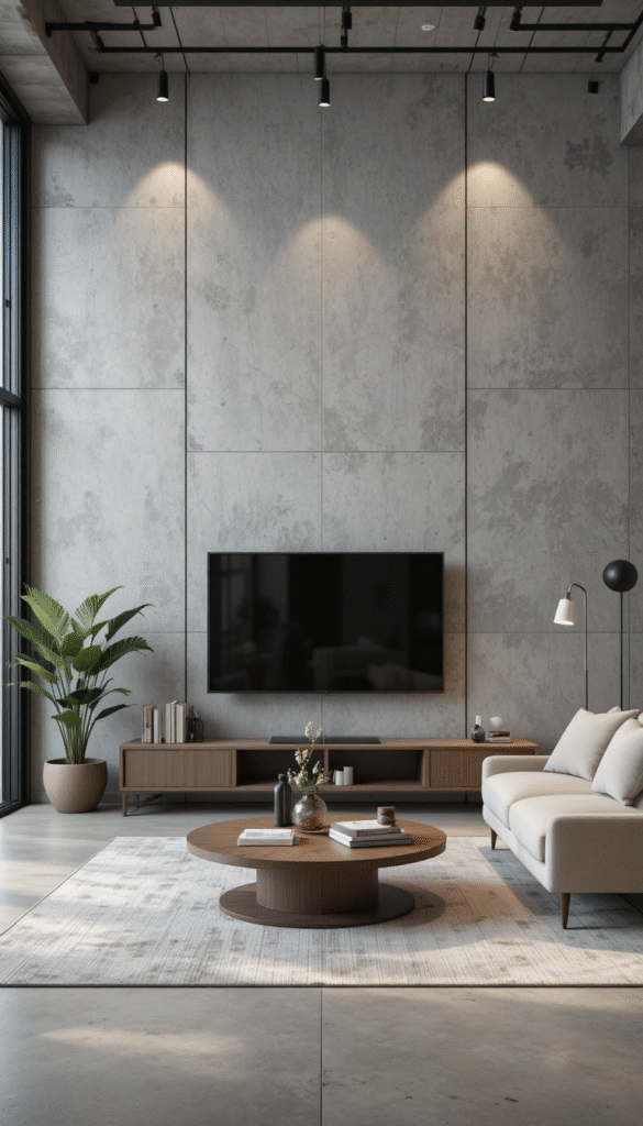 Microcement walls deliver a smooth, seamless finish that feels modern and upscale. Popular in lofts and city apartments, this design adds subtle texture while keeping the color palette clean. It pairs perfectly with minimalist furniture and industrial accents.