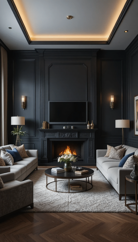Deep shades like charcoal, navy, and forest green are redefining living room walls in 2026. These colors create a cozy, intimate atmosphere while still feeling luxurious. When balanced with proper lighting and light décor, dark walls look bold yet sophisticated.