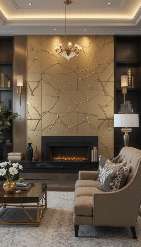 Metallic wall accents in brushed gold, bronze, or matte black are trending in 2026. Used sparingly, these finishes add a touch of luxury and modern edge. Metallic elements reflect light beautifully, enhancing the overall ambiance of the living room.