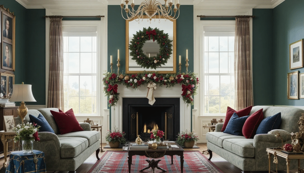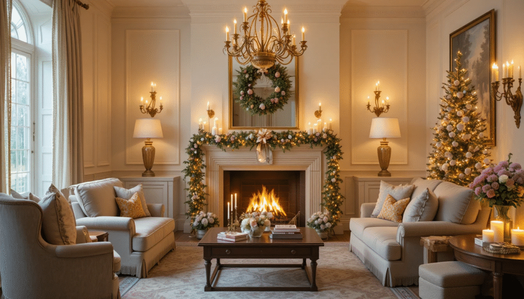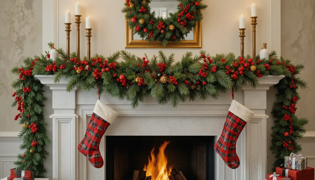 The fireplace mantel is the heart of a Ralph Lauren Christmas home. Decorate it with evergreen garlands, red berries, and elegant candle holders. Incorporate brass or antique finishes to reflect the brand’s timeless luxury. Hanging tartan stockings and adding a few wrapped gifts nearby complete the cozy yet polished holiday scene.