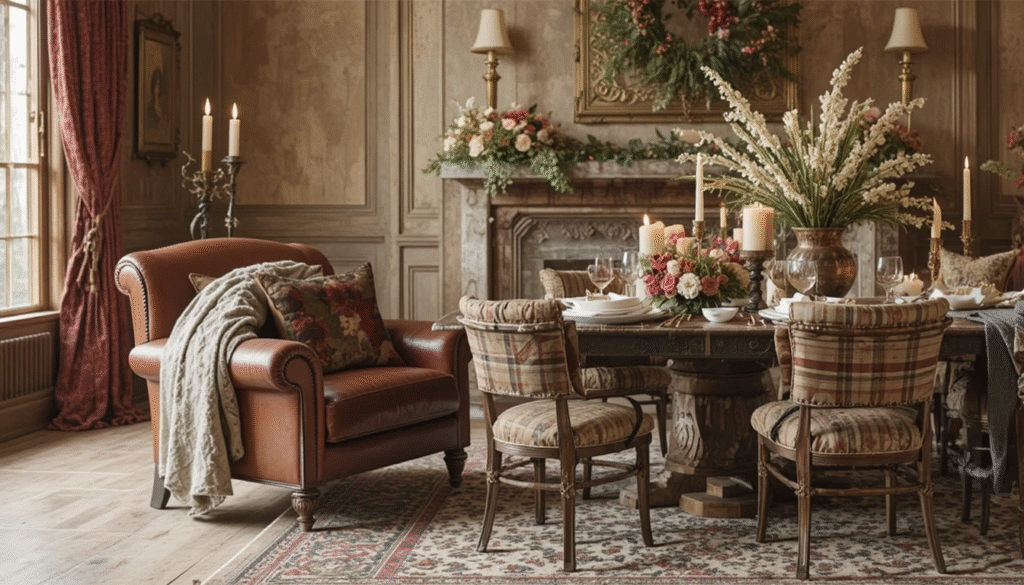 Texture plays a key role in creating that rich Ralph Lauren Christmas ambiance. Mix velvet, wool, cashmere, and tweed to achieve a layered and inviting space. Drape a velvet throw over a leather armchair, or set the dining table with linen napkins and plaid runners. The blend of these high-quality materials creates a feeling of comfort and timeless sophistication — perfect for cozy winter gatherings.