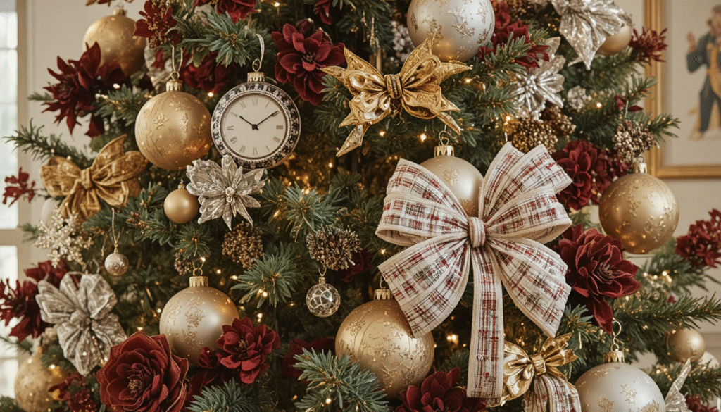 The Ralph Lauren Christmas tree is elegant yet understated. Decorate your tree with metallic ornaments, velvet ribbons, and crystal accents in gold, silver, and deep red tones. Incorporate plaid bows or tartan ornaments for that signature touch. Finish with a classic angel or star topper and plenty of white or warm lights to complete the sophisticated look.