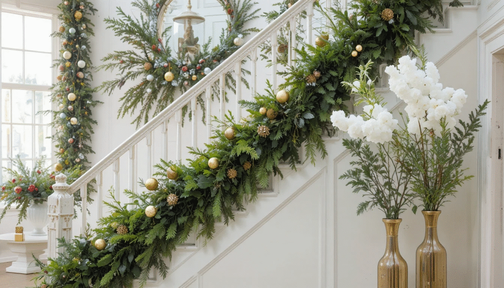Bring the outdoors in with fresh pine, cedar, and holly. Natural greenery not only looks stunning but also fills your home with the scent of Christmas. Use garlands along staircases, wreaths on doors, and sprigs of pine in vases. Pair them with metallic ornaments or velvet ribbons for that perfect blend of nature and sophistication — a hallmark of the Ralph Lauren look.