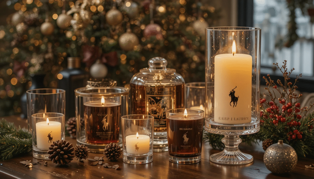 The scent of your home completes the Ralph Lauren Christmas experience. Choose candles with notes of pine, cedarwood, cinnamon, or amber. Place them in crystal holders or glass hurricanes for added sophistication. A subtle, luxurious fragrance can make your home feel warm, welcoming, and perfectly in tune with the elegant Christmas theme.