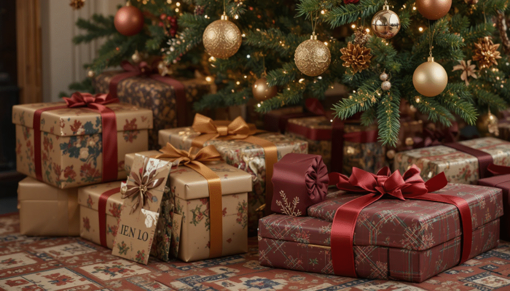 The Ralph Lauren Christmas aesthetic extends even to the presents under your tree. Use high-quality wrapping paper in plaid, gold, or deep red hues. Add velvet or satin ribbons and elegant gift tags for a polished finish. This cohesive approach ensures that every detail in your home contributes to the luxurious and timeless holiday vibe.