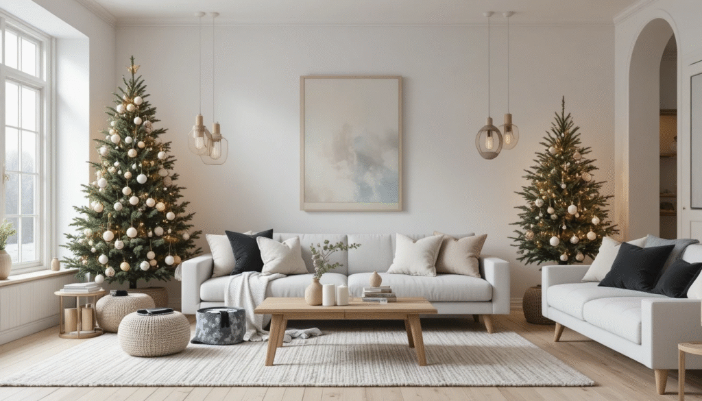 Scandinavian Christmas decor beautifully blends traditional charm with modern simplicity. You can combine heritage elements like straw ornaments or knitted stockings with sleek metal candleholders or minimalist trees. This fusion creates a balanced and inviting space that feels both nostalgic and current — the perfect harmony for today’s homes.