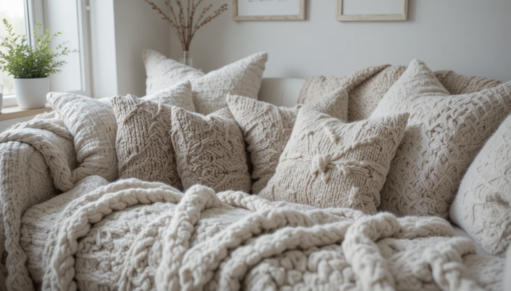 To balance the simplicity of Scandinavian decor, layer your space with cozy fabrics and textures. Add chunky knit blankets, faux fur throws, and linen cushions to make your home feel snug and welcoming. Stick to soft neutral tones and natural fabrics like wool and cotton. These elements create a feeling of warmth and relaxation, perfect for curling up with a cup of hot cocoa during the holidays.