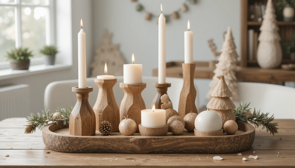 Scandinavian design values craftsmanship and authenticity. Incorporate wooden candle holders, carved ornaments, or rustic trays to add an organic feel to your Christmas setup. Handcrafted pieces or simple DIY decorations such as wooden stars or paper garlands perfectly capture the minimalist aesthetic. This focus on natural materials and craftsmanship gives your decor character and timeless charm.