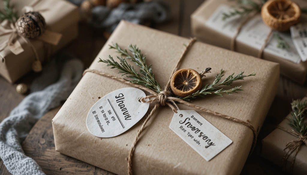 Gift wrapping is another opportunity to express Scandinavian charm. Choose brown kraft paper, tie it with natural jute string, and embellish with greenery or dried fruit slices. Simple handwritten tags and minimal designs make each gift look elegant and thoughtful. This understated wrapping style reflects the beauty of simplicity and shows care without extravagance.