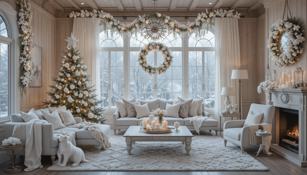 To recreate the serene beauty of a Nordic winter, focus on white Christmas decorations. White garlands, snowflake ornaments, and frosted wreaths bring a clean, fresh look to your home. You can combine white with wooden textures and soft lighting for that cozy, snow-dusted feel. It’s a peaceful and timeless look that captures the true spirit of Scandinavian Christmas decor.