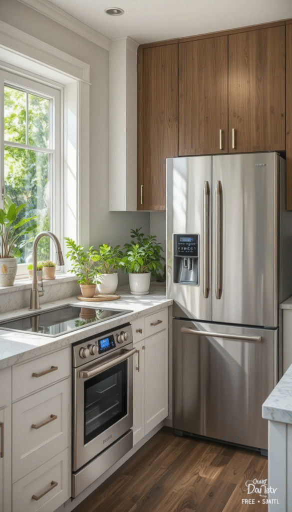 Built-in and panel-ready appliances are redefining small kitchen design. Refrigerators and dishwashers that blend with cabinetry create a seamless, clutter-free appearance.